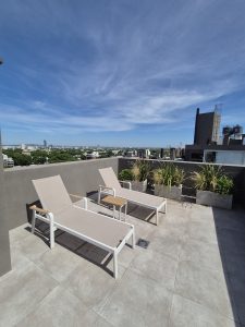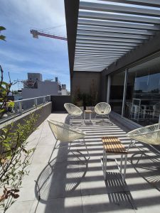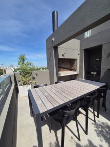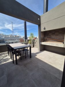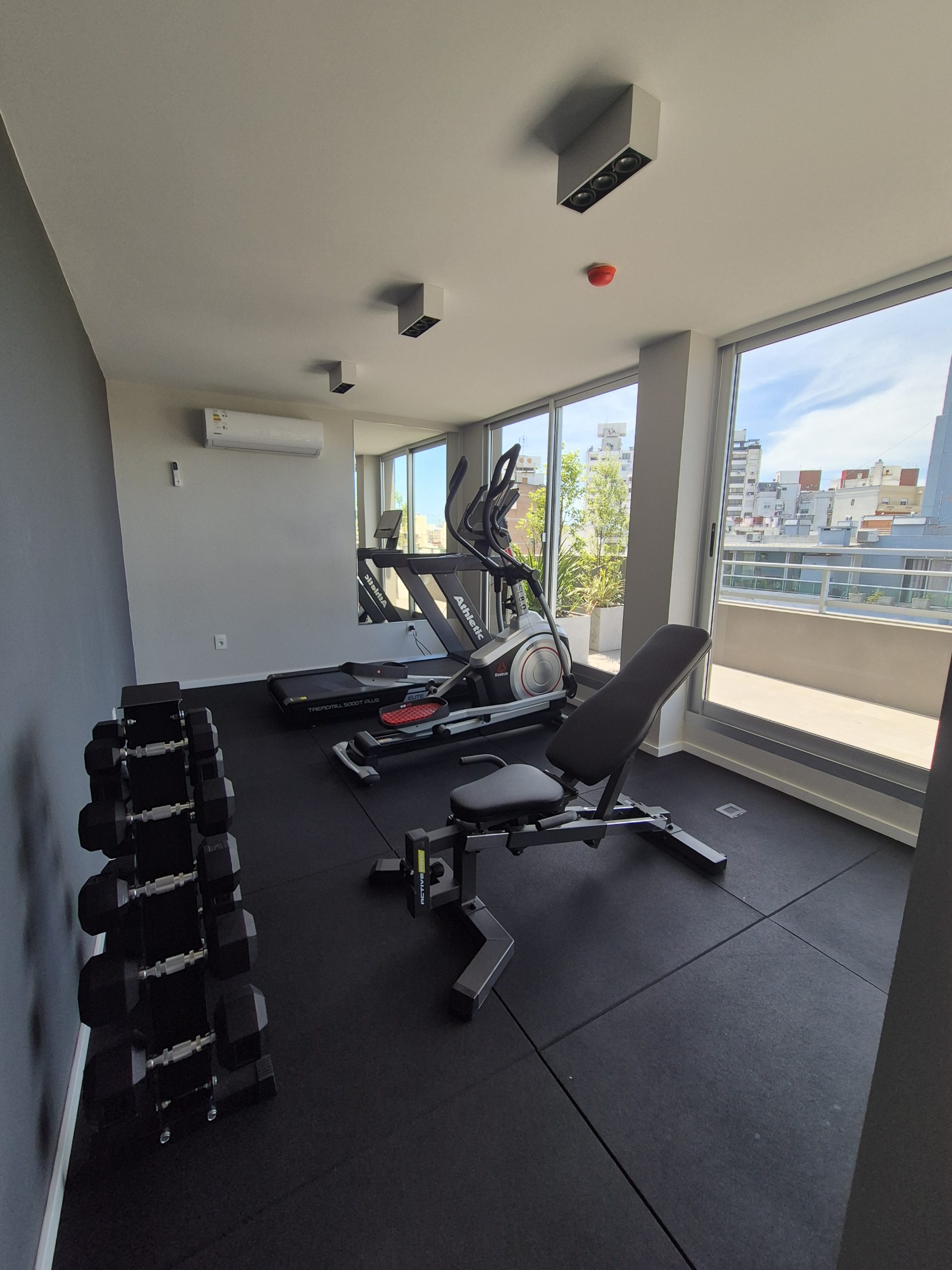 Previsión para aire acondicionado. - Cocina integrada, con placares aéreos y bajo mesada, barra separadora. - Terraza al frente, amplia, medidas 7.0 x 1.0 metros. - Baño completo, finas terminaciones, cómodo, medidas 2.0 x 2.0 metros. - Primer dormitorio al frente, medidas 3.30 x 2.20 metros. - Segundo dormitorio al frente, medidas 2.50 x 4.60 metros. Amenities: - Barbacoa - Parrillero - Gimnasio - Lavadero - Solarium Consulte por garantías aceptadas o para coordinar una visita!