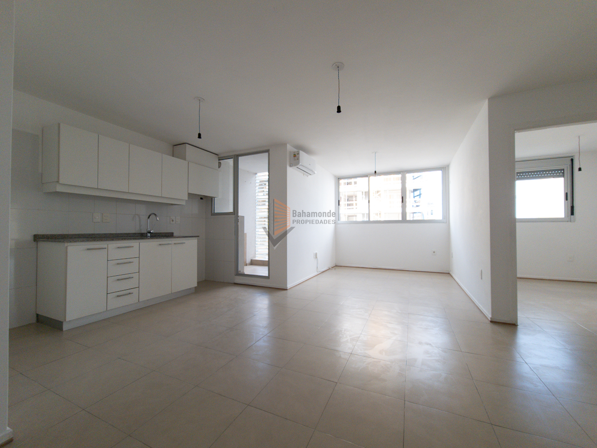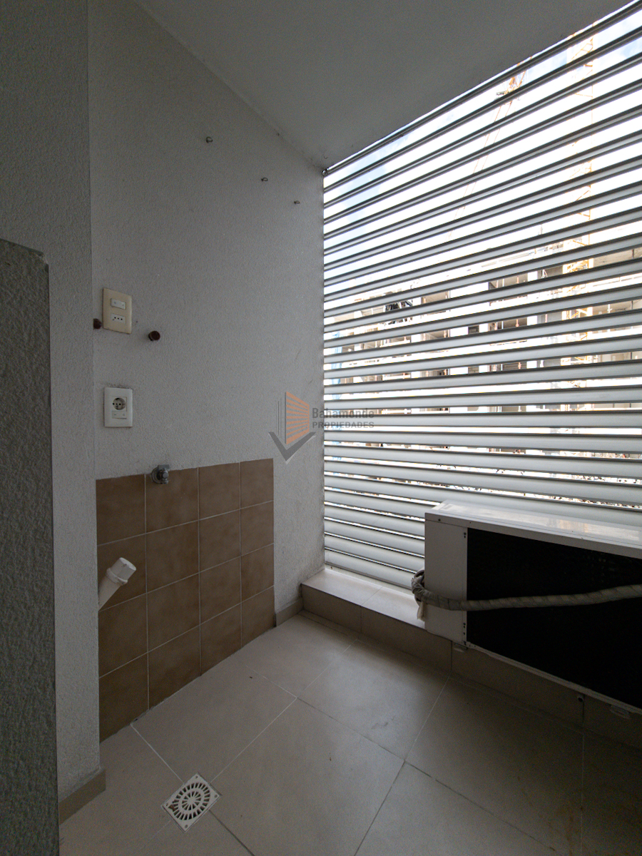 La cocina está integrada al living-comedor, equipada con muebles bajo mesada y alacena, y acceso directo a un espacio de lavadero.
