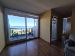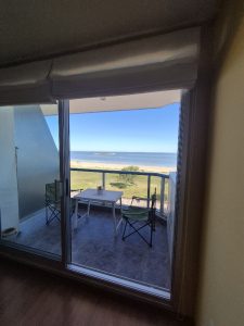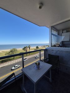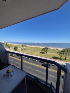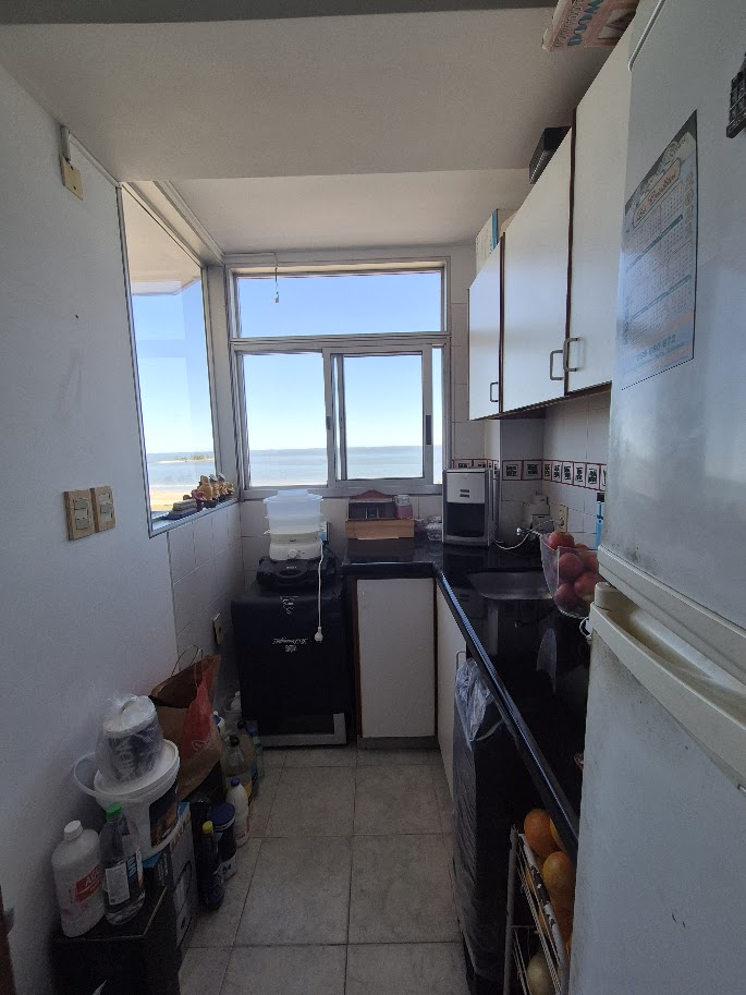 Al frente living comedor, medidas 5.60 mts x 3.90 mts, amplio ventanal, salida a terraza, medida de la terraza 4 mts. Cocina definida con vista al mar, placares aereos y bajo mesada. Medidas. Baño impecable, medidas 1.60 mts x 1.98 mts