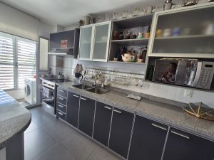 Posee tres terrazas, una de ellas con parrillero y salida desde el comedor diario, y terraza lavadero con conexión para lavarropas. Entre sus terminaciones se destacan pisos en madera de lapacho en dormitorios y living principal, marcos de puertas en cedro lustrado macizo y zócalos en petiribí. Los cielorrasos de terrazas están terminados en madera dura barnizada.