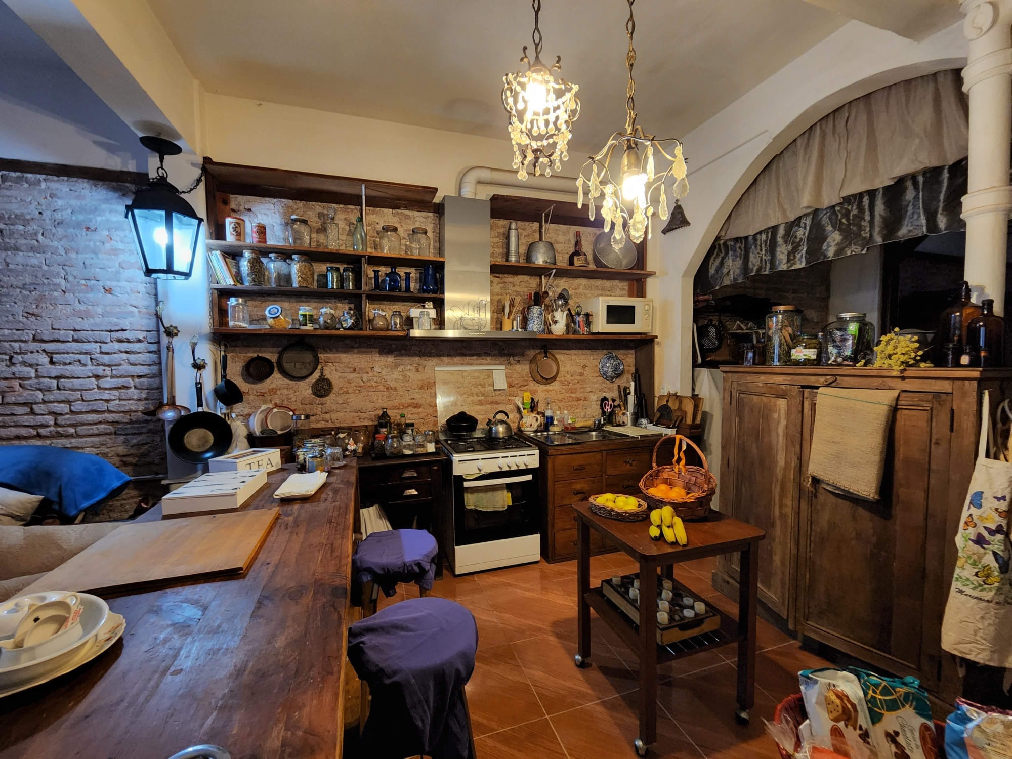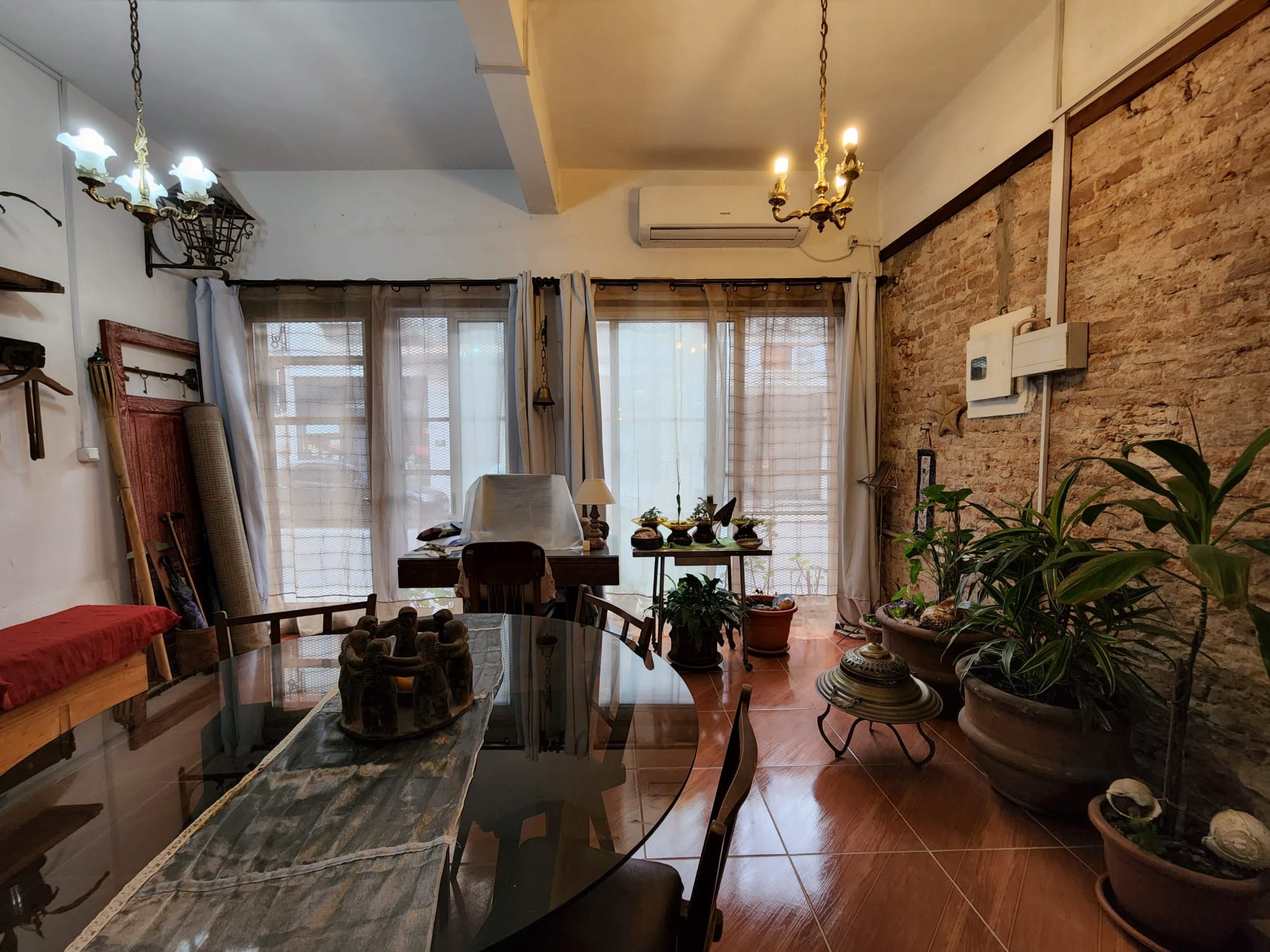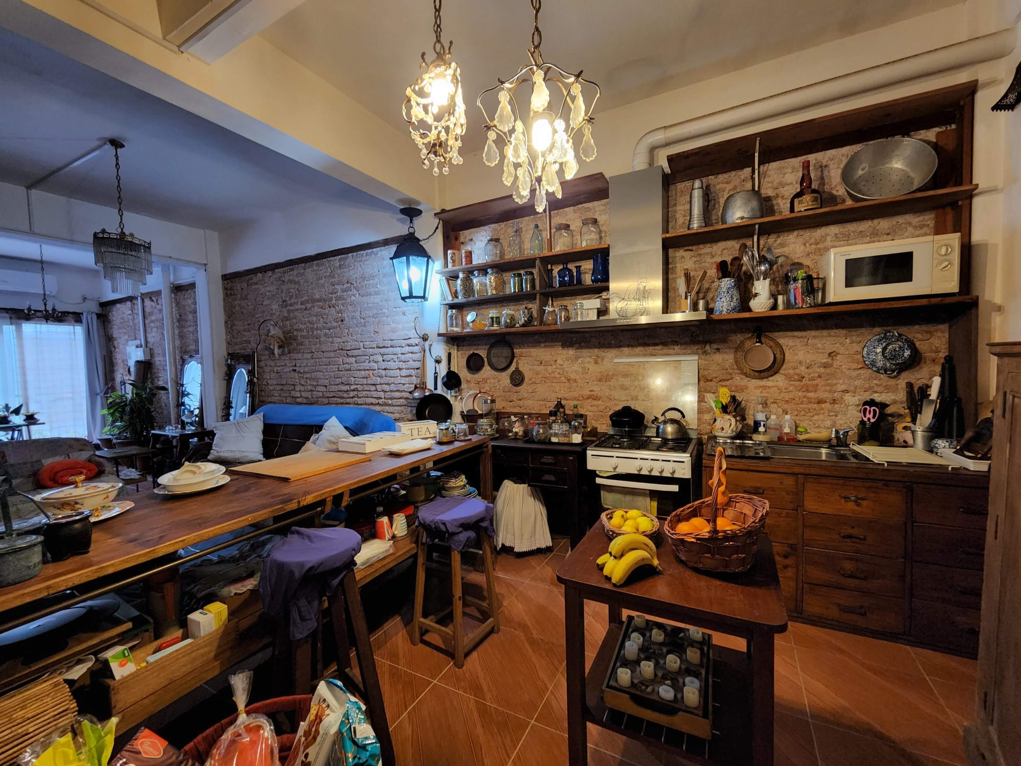 Se destacan detalles estéticos como paredes de ladrillo visto y terminaciones en madera, que aportan calidez y carácter al conjunto.