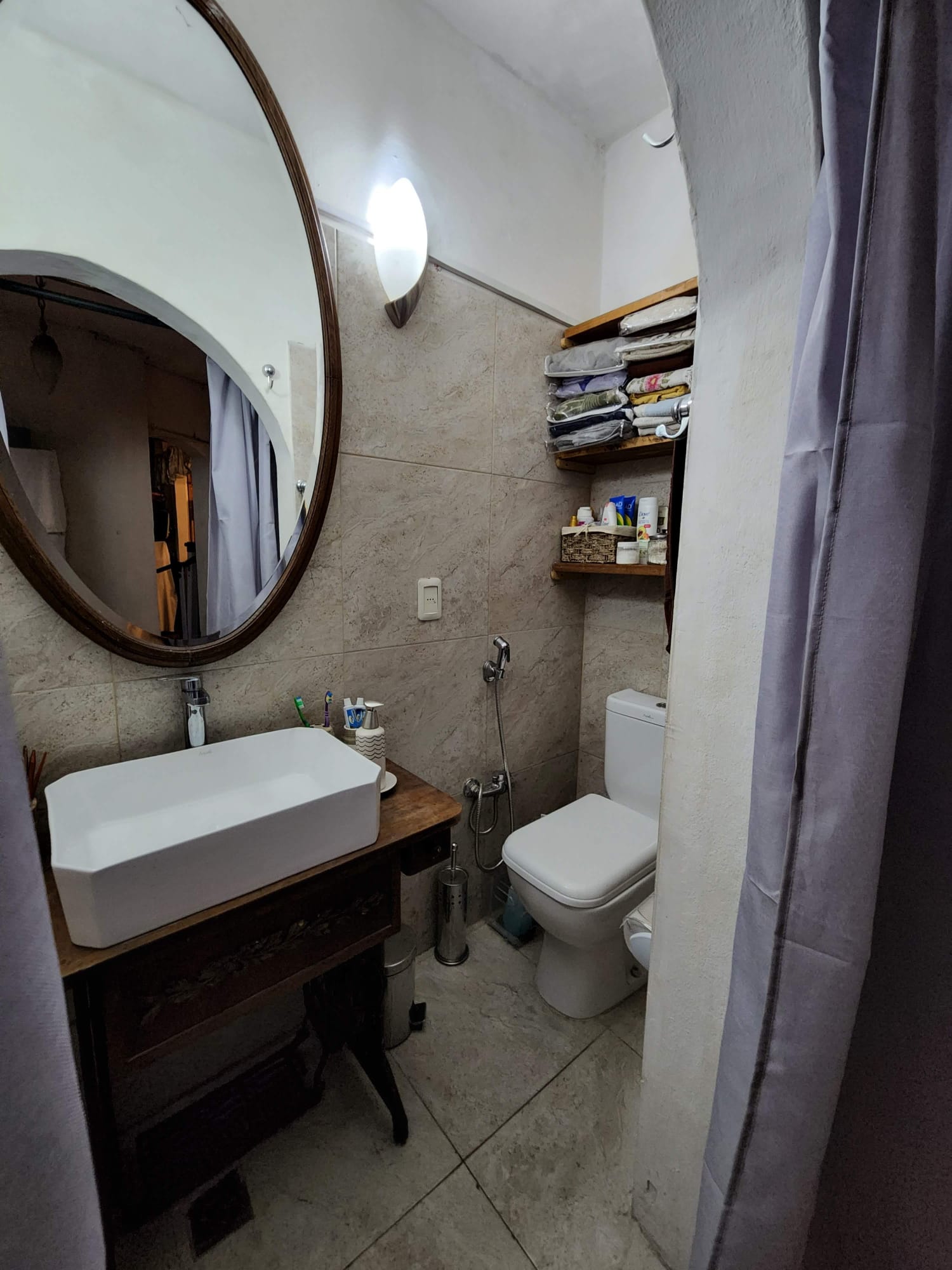 Un segundo baño con previsión para lavarropas.