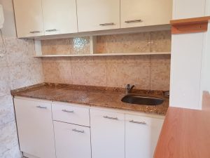 La propiedad cuenta con una cocina equipada con muebles superiores e inferiores, y mesada de granito.