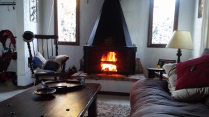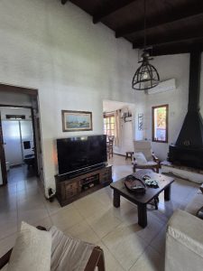 Ingreso a living con estufa a leña, se comunica con cocina semi integrada.